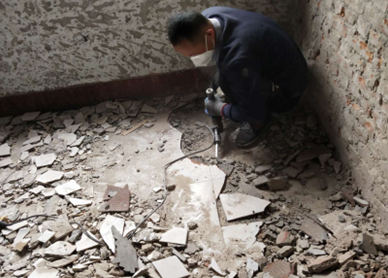 三:公司安排敲墻師傅、準備拆除專用工具,在約定時間達到,開始施工拆除敲墻作業。