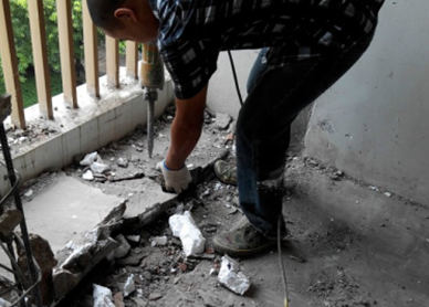 三:公司安排敲墻師傅、準備拆除專用工具,在約定時間達到,開始施工拆除敲墻作業。